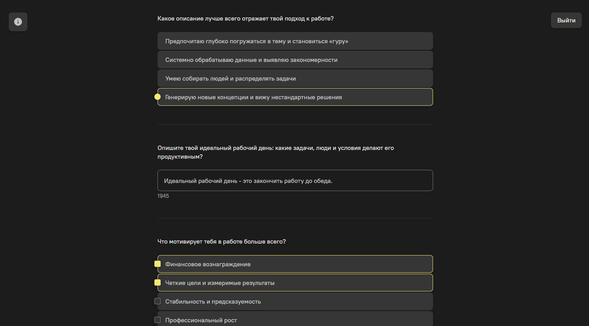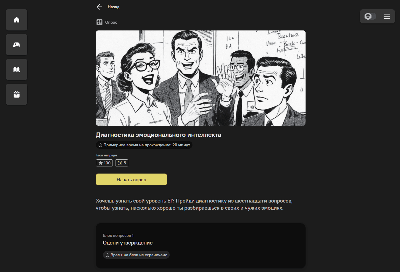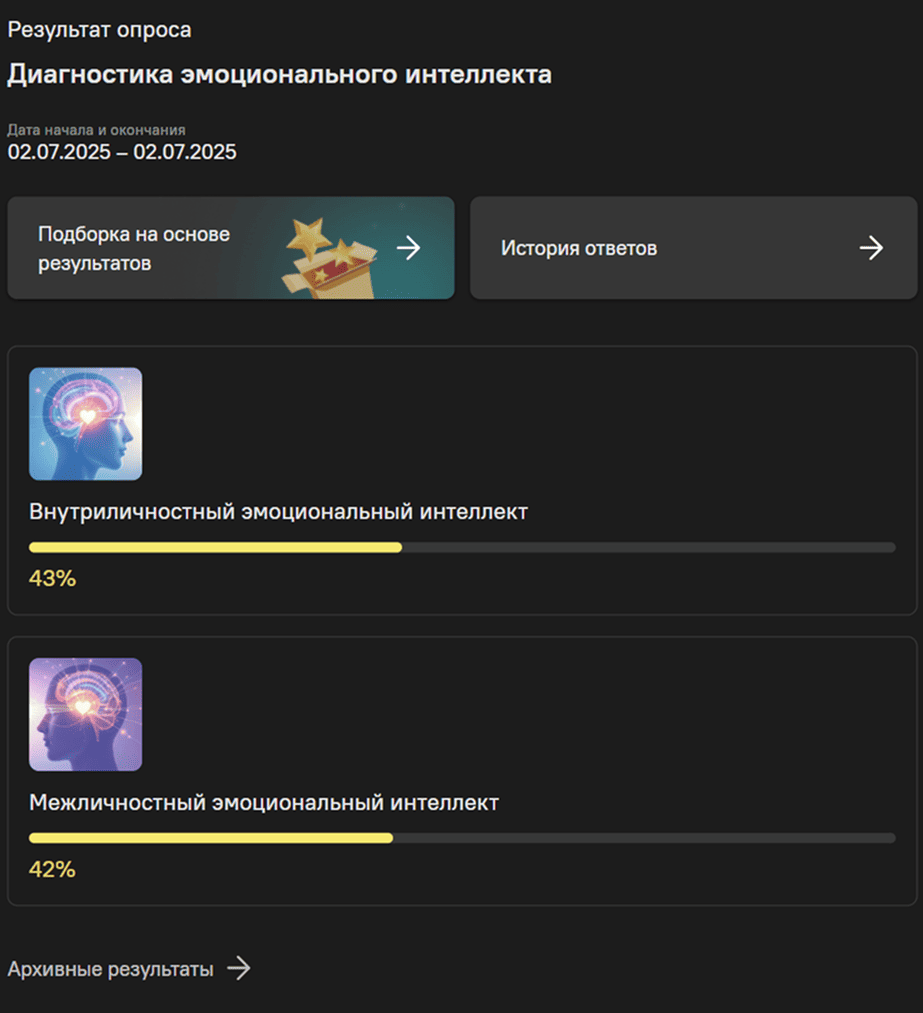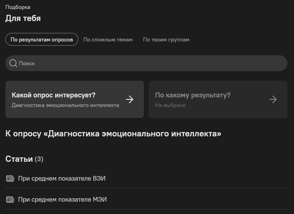 Опросы получились многофункциональным инструментом, на котором можно реализовать и сбор обратной связи по пройденному обучению, и профориентацию, и вводный опрос для формирования персональных рекомендаций, и оценку 360°
