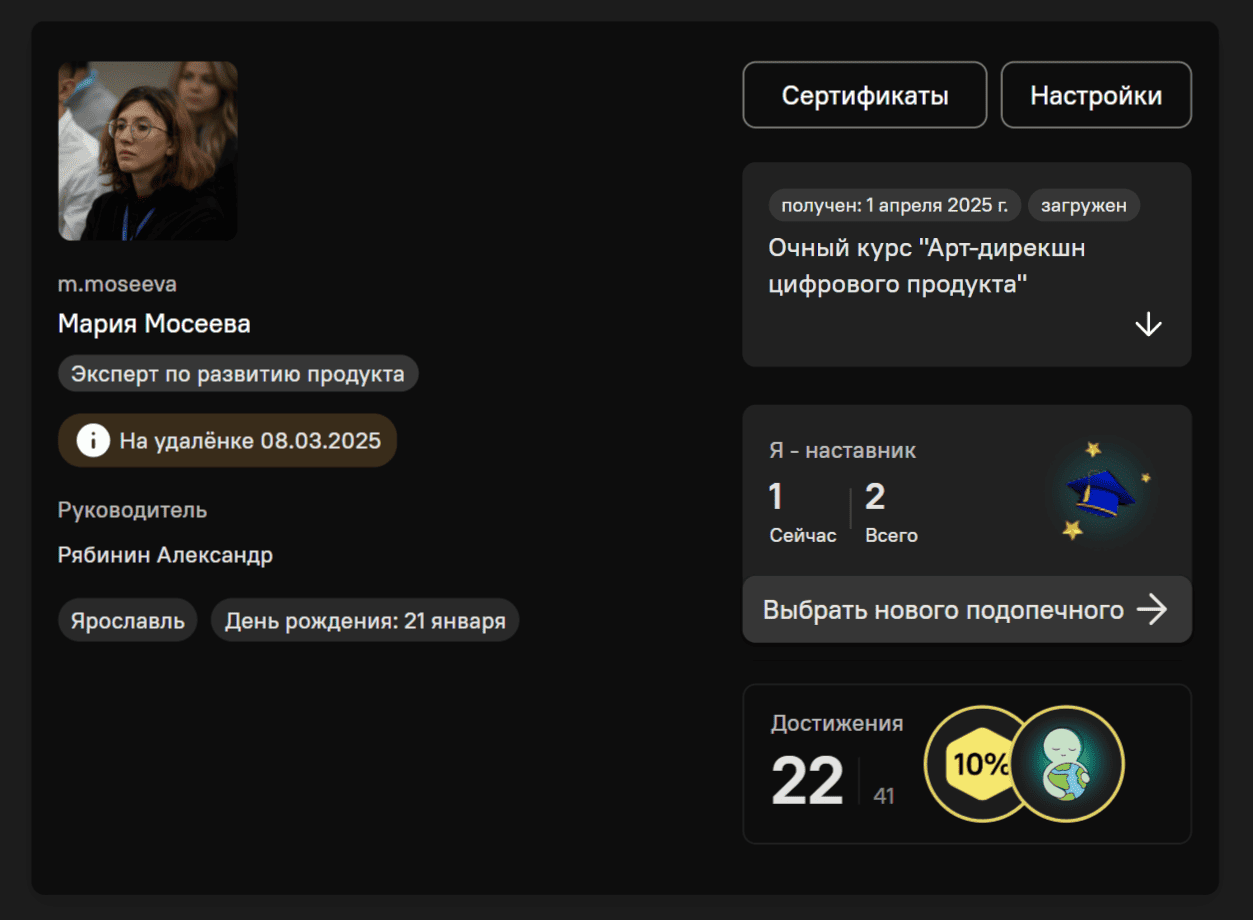 Теперь обучающиеся могут хранить в профиле не только те сертификаты, которые они получили за активности на платформе Вовлекай. Можно загрузить любые доказательства своего успеха, подтвердить ссылкой на источник (если она есть) и, дождавшись проверки от администратора, даже закрепить этот сертификат в профиле на всеобщее обозрение.
