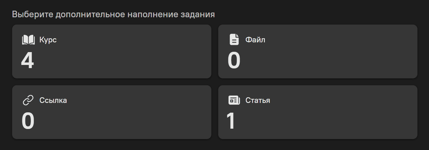 Когда наставник (или руководитель) добавляет новое задание в назначение трека для пользователя, он может прикрепить к заданию не только файлы и ссылки, но и курсы, и статьи.