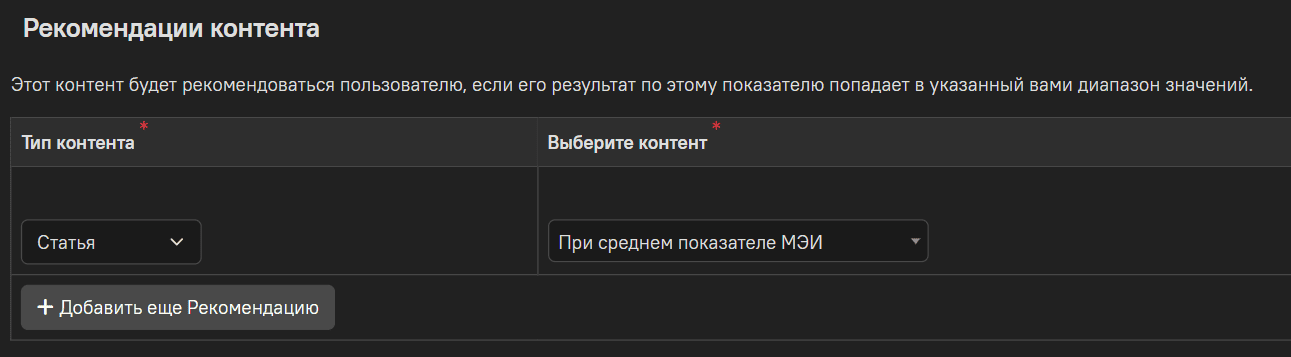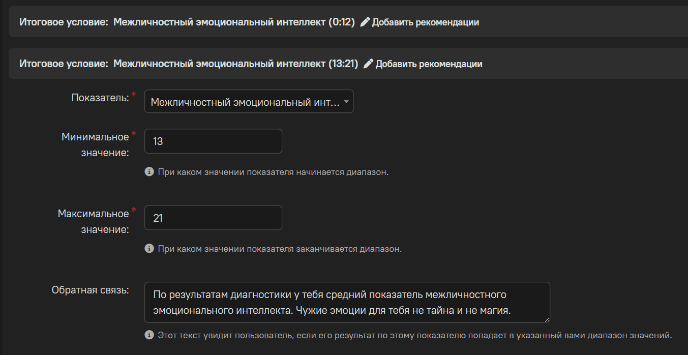 Если привязать к вариантам ответа влияние на разные показатели, то простой опрос превращается в диагностику. А если указать рекомендации под разные результаты, то мы еще и предложим пользователю персональную подборку контента.