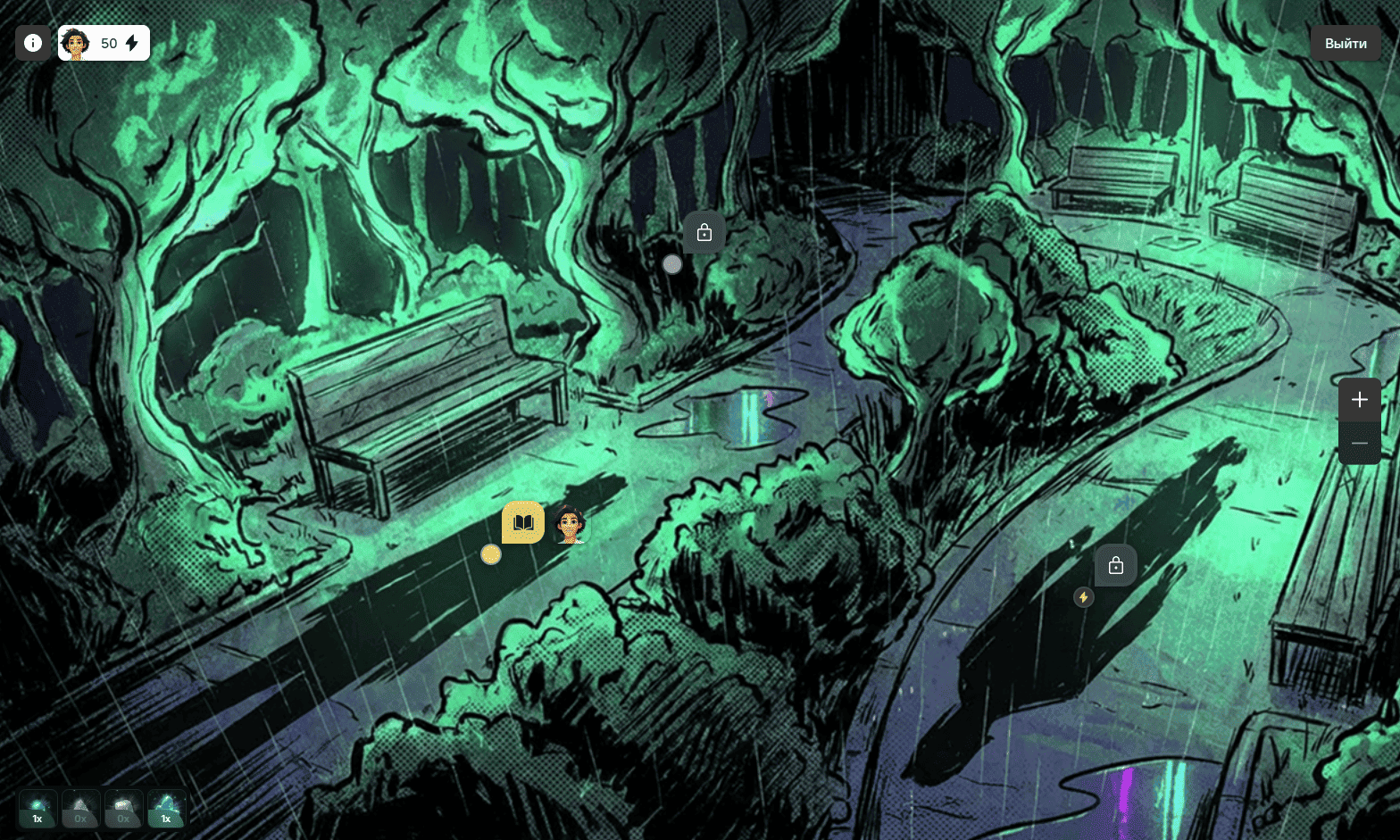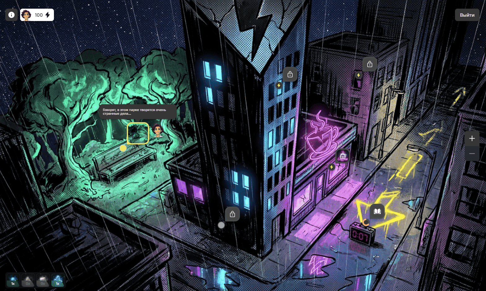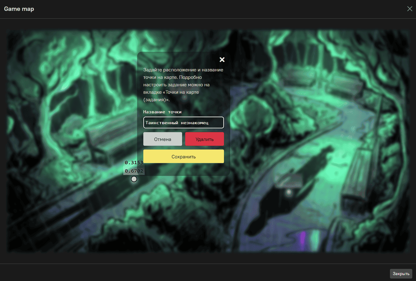Загружайте иллюстрацию (теперь, когда нейросети стали так доступны, не нужно даже иметь штат иллюстраторов), расставляйте точки-задания и наполняйте их контентом. В задания можно добавить другие вложенные карты, квесты, статьи и курсы.