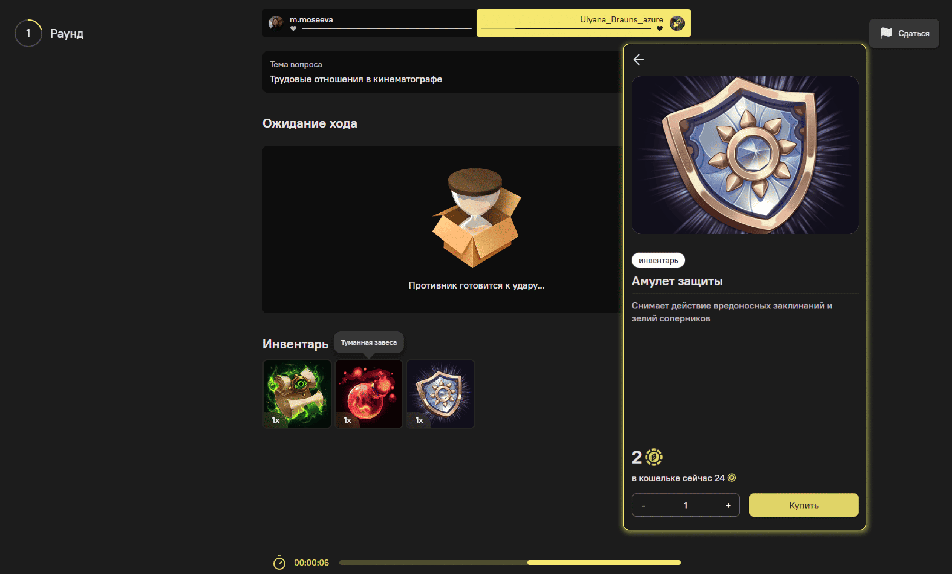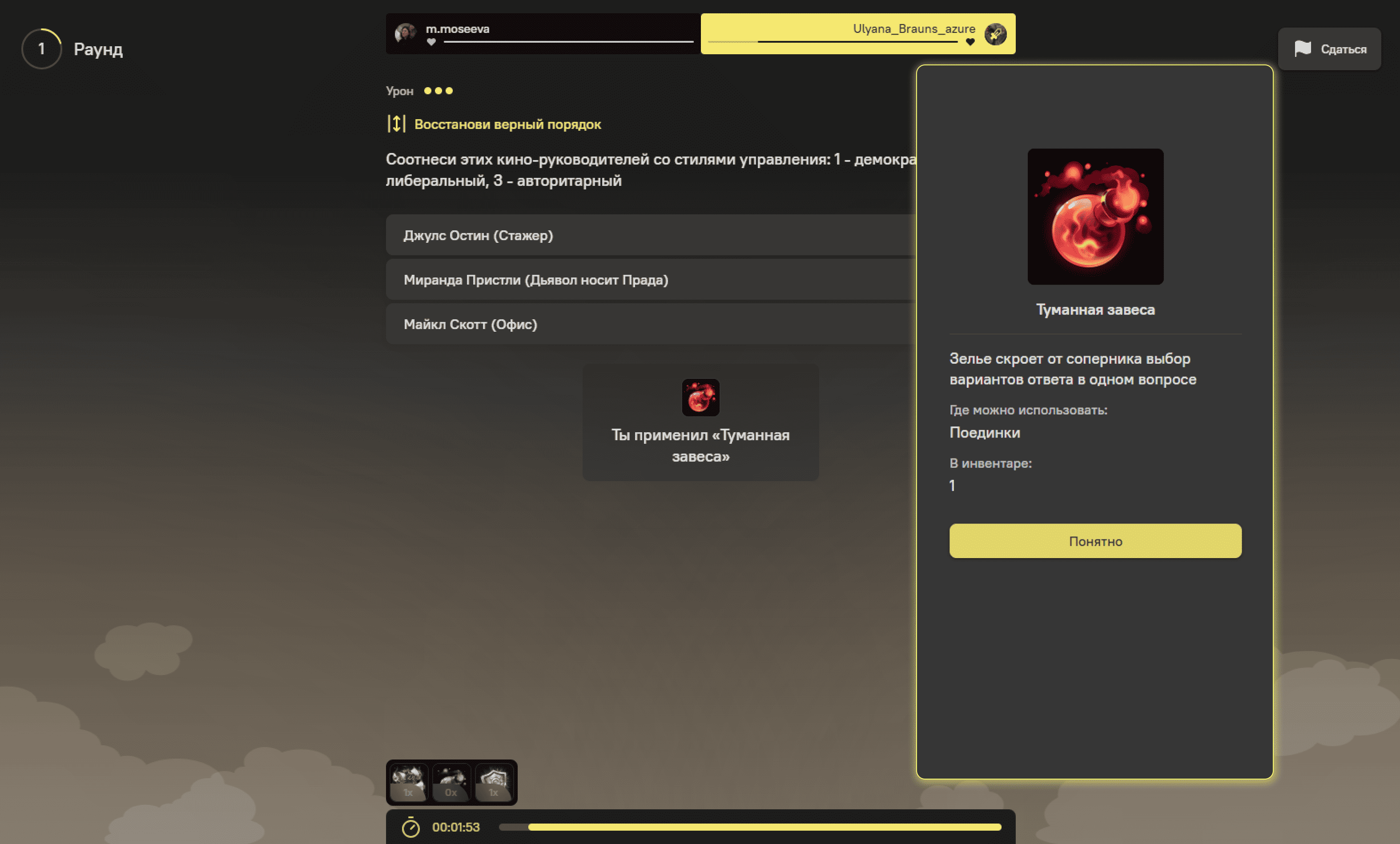 Зелье скроет от соперника выбор вариантов ответа в одном вопросе