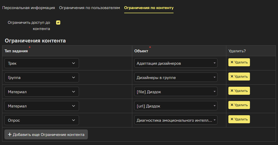 Весь контент, который он создаёт в рамках своей роли, будет виден и доступен для редактирования только ему и глобальным администраторам — у кого нет никаких ограничений. Созданное и загруженное локальным администратором будет автоматически пополнять список доступного контента в его учётной записи. Глобальный администратор может открыть доступ к этому контенту другому локальному администратору через настройки этих ограничений.