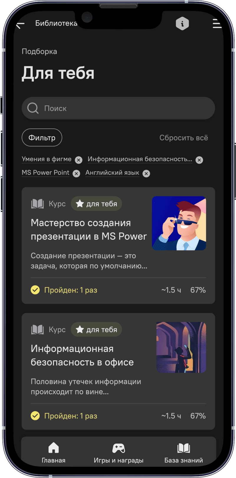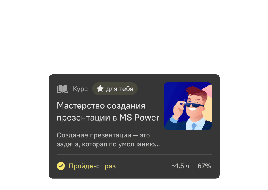 Создавайте траектории обучения для разных функций: новичков, руководителей, сотрудников фронт-офиса, бек-офиса и др. Повышайте релевантность контента за счёт рекомендаций.