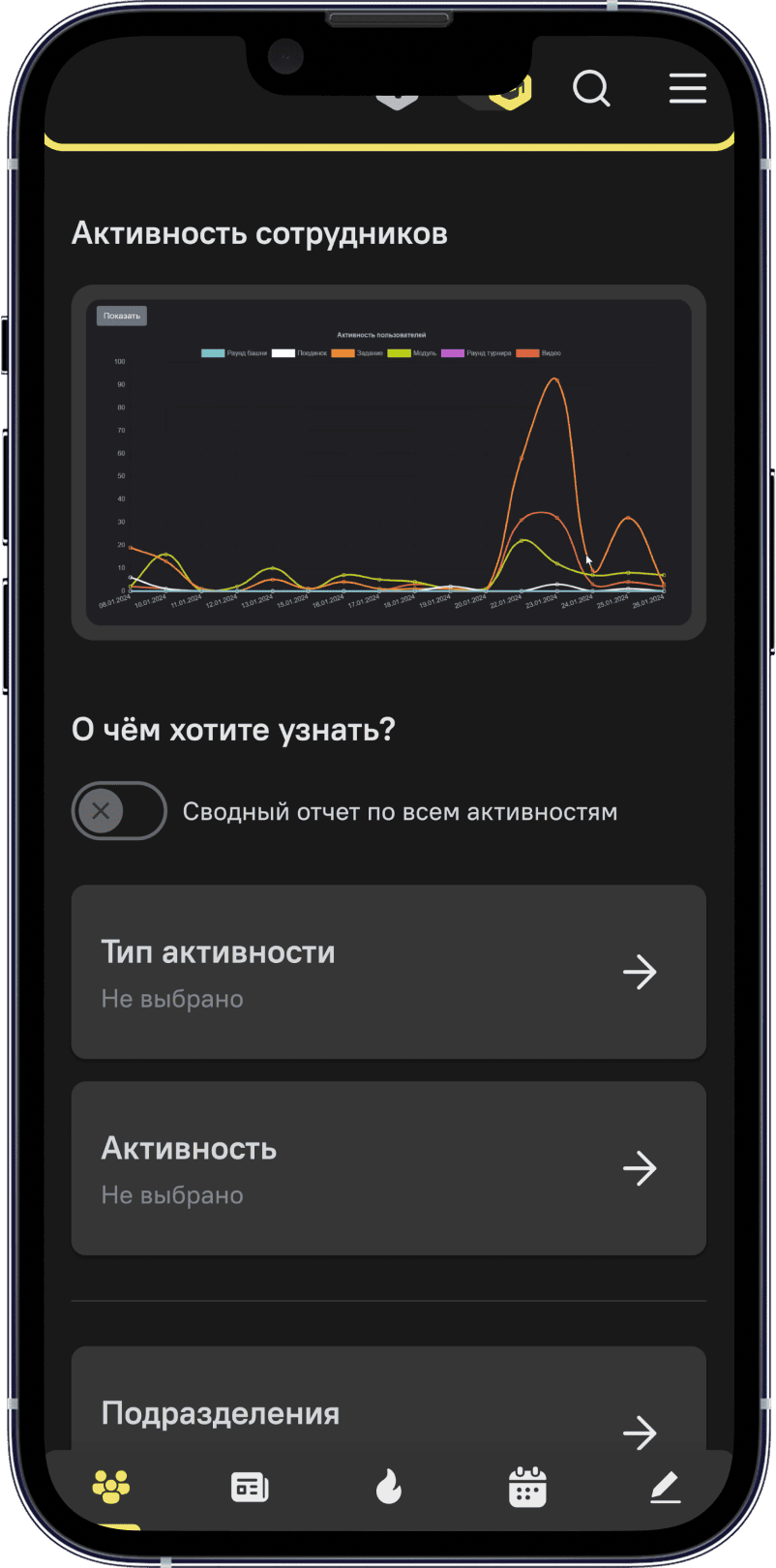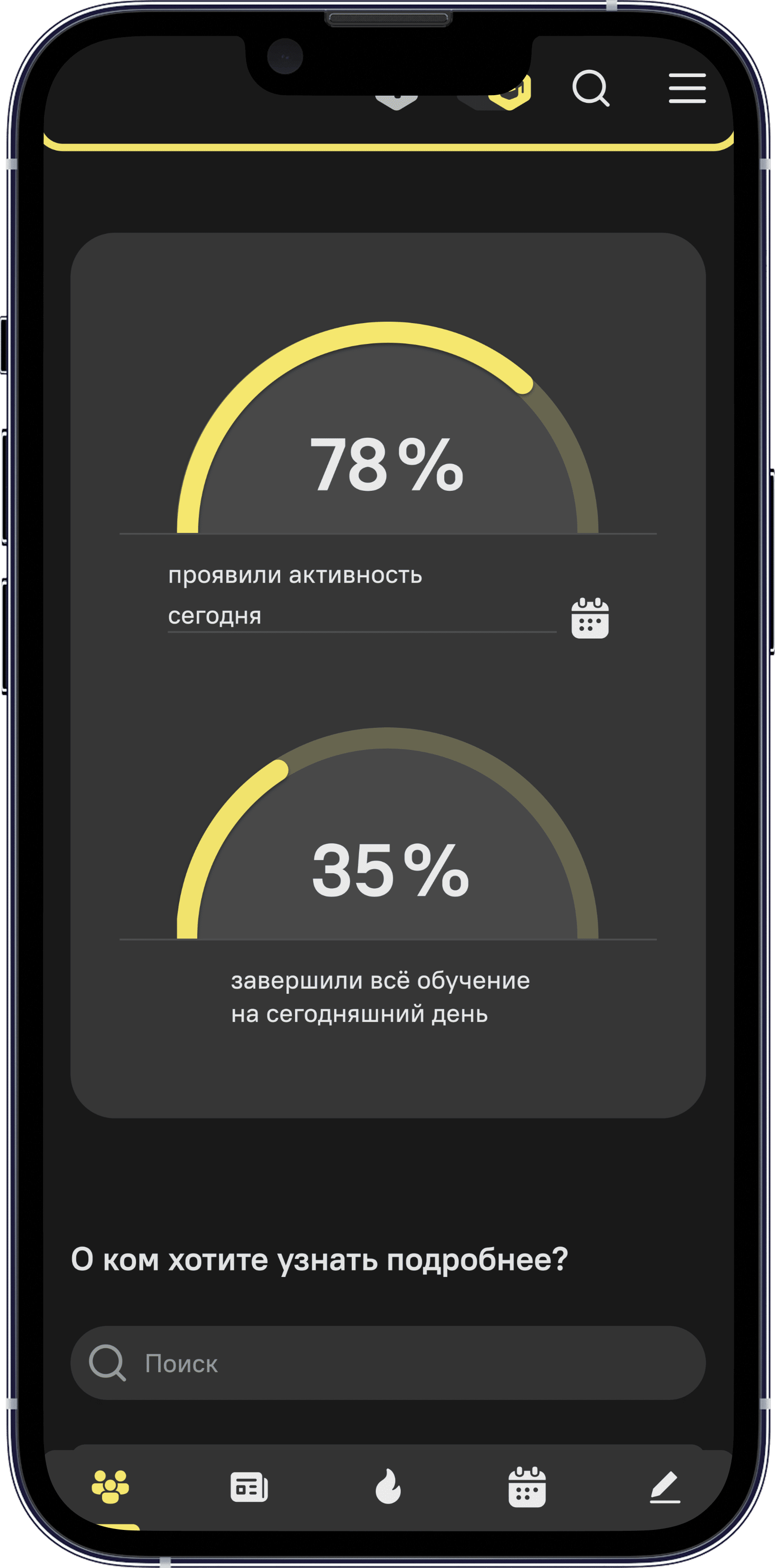 Используйте виджеты, новости-stories, push-уведомления, чтобы уведомлять сотрудников и напоминать им об обучении.